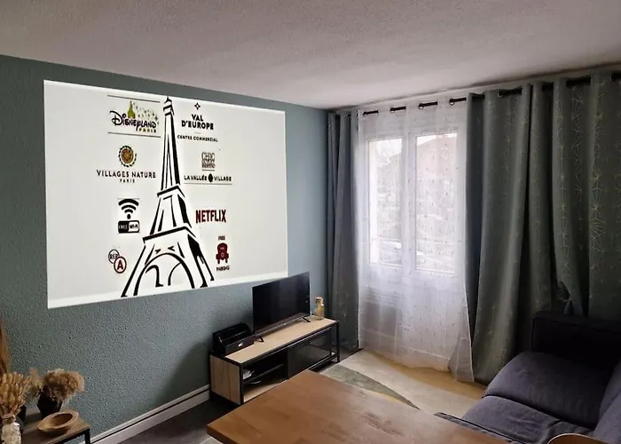 Located within a 7-km distance of Disneyland Paris, the 1-room Joli Studio Disneyland Paris 2 Pers Apartment Bussy-Saint-Georges features free private parking for those who travel by car. Eglise catholique Notre-Dame-du-Val Catholic Church is a 6-minute walk away, while Buffalo Bill's Wild West Show with Mickey & Friends is also within a 7-km distance of the apartment.